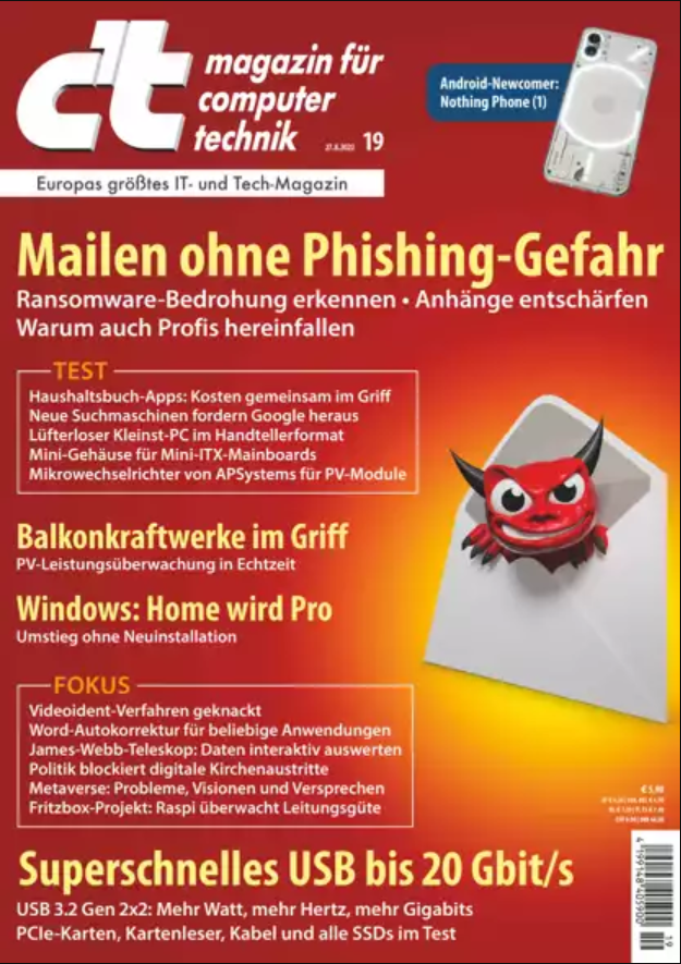 Keywords: c't, Heise, Magazin, Sicherheit, Mail, Hardwaretest, Windows, Computer