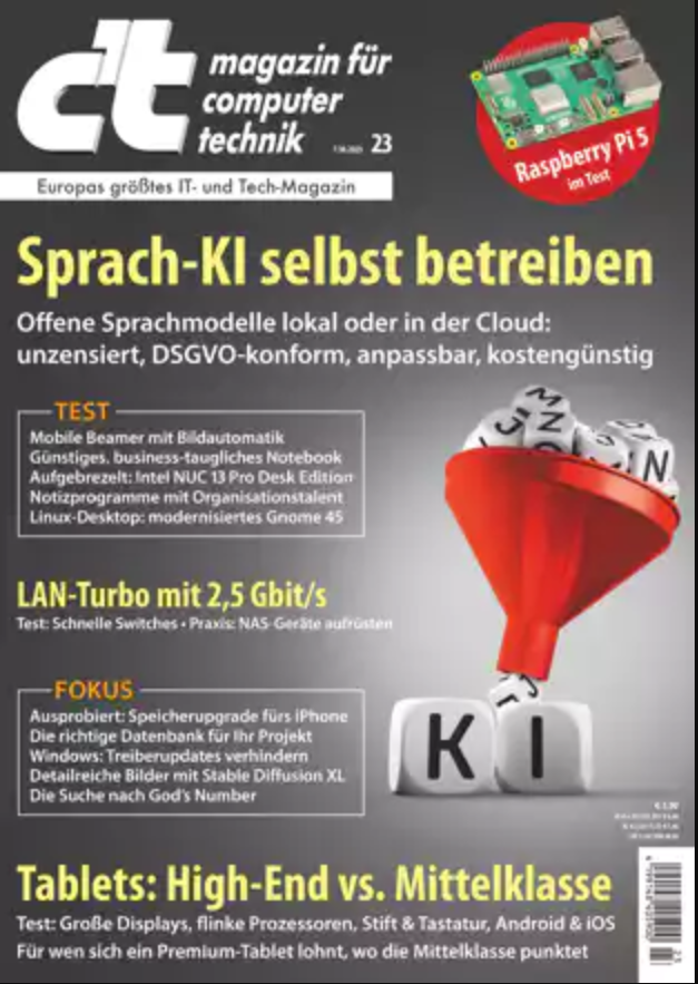 Keywords: c't, Heise, Magazin, KI, Hardwaretest, Sicherheit, Computer, Windows, Tablets, Vergleich